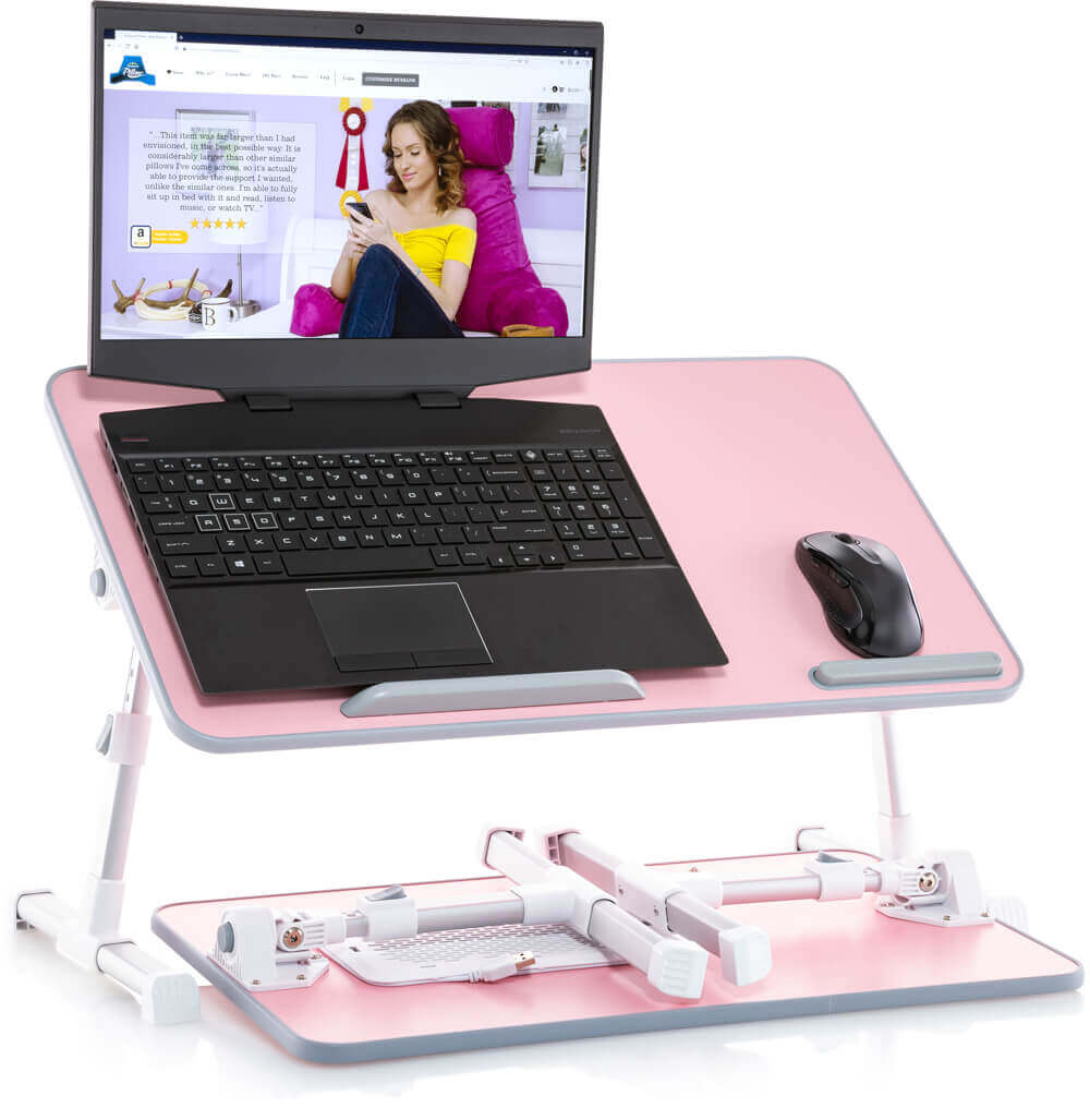Lap Desk Pink Large Wood Top - Fits Up to 17" Laptop - Dual Cushion, Wrist Rest & Built-in Mouse Pad, Stand for Bed, Slot for Tablet, Pen & Phone