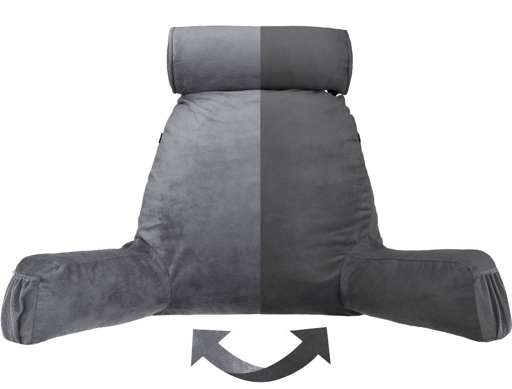 Husband Pillow Medium Cover Aspen Edition Iron Grey, Reversible Micro Plush to Microsuede, Side & Back Pockets. Bedrest Reading Pillowcase with Arms