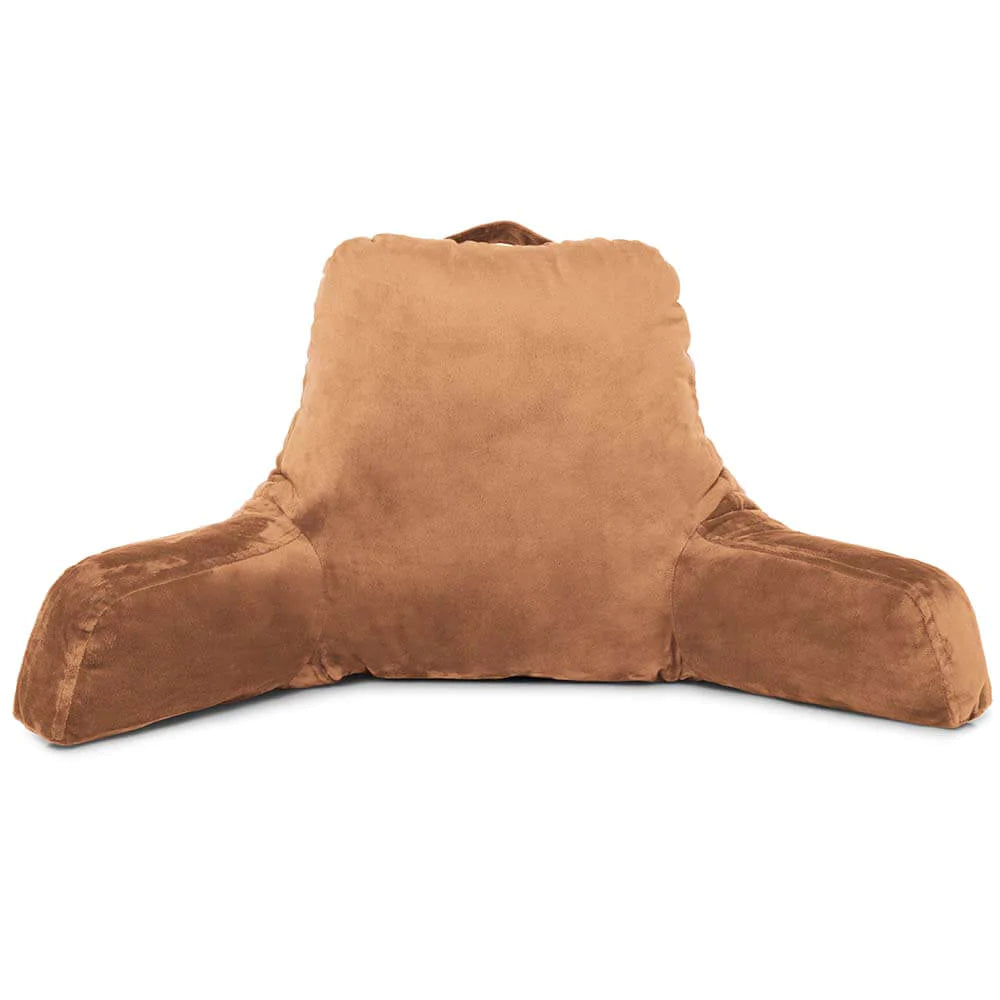 Husband Pillow Tan, Standard+ Original Reading Pillow in Bed Rest Chair. Memory Foam Large Adult Backrest w/ Arms, Back Support Sit Sitting Up