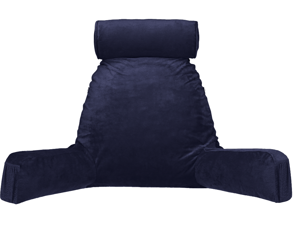 Husband Pillow Medium Cover Only Dark Blue, Cozy Microplush Bed Rest Pillow Cover Side and Back Pockets for Your Favorite Comfy Reading Pillow