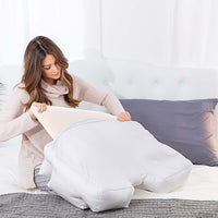 Revolutionary Wife “Arm-Positioning” Pillow Provides Perfect Comfort. The Pillow Allows For Arm Movements While You Switch Into Different Comfortable Positions Through Your Night . Easily Adjustable To Your Personal Unique Needs. Head, Shoulder, & Body Alignment Will Be In Bliss As You Can Adjust the Height of Your Pillow For Proper Support & Comfort . Ergonomic Head & Neck U Shaped Grove Gives You Shoulder and Body Alignment While You Place Arms Where You Want! Extra Stuffing is Included. 5 Zippers To Access Points Allow You To Adapt The Pillows Height, Support, Pitch and Comfort - For Your Optimal Preference.
