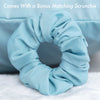 Ultra Silk Like Beauty Pillow Cover. Blend 85% Nylon / 15% Spandex. Pillowcase Keep Hair Tangle Free & Helps Skin. Scrunchie, Sweat Baby Blue, Queen