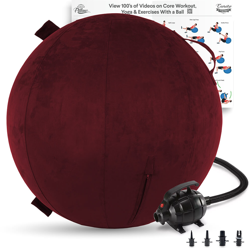 Exercise Ball 65cm/26in, Arizona Maroon Microsuede Leather Cover with Electric Quick Pump. Yoga, Pilates, Fitness, Office Chair Seat. Slip Resistant