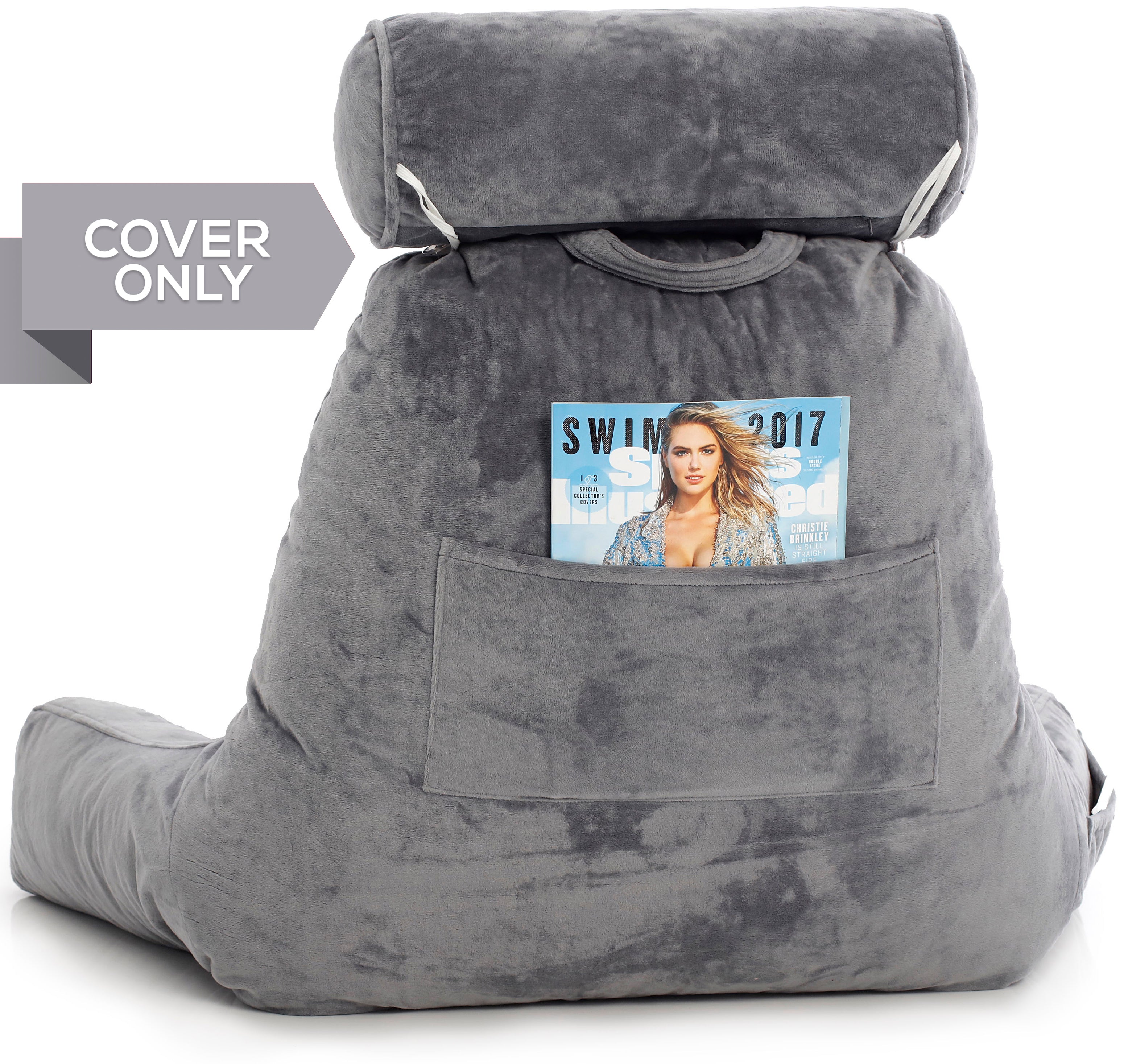 Husband Pillow XXL Cover Only Dark Grey, Cozy Microplush Bed Rest Pillow Cover. Side & Back Pockets for Your Favorite Comfy Reading Pillow with Arms