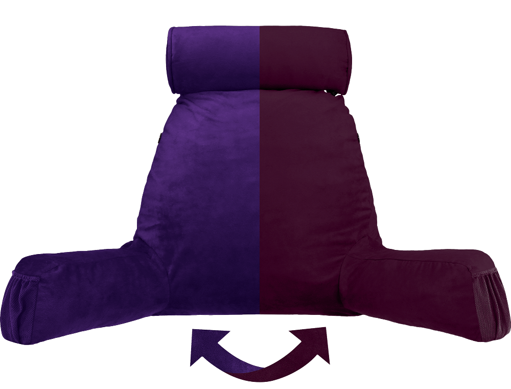 Husband Pillow Medium Cover Aspen Edition Mauve Purple, Reversible Micro Plush to Microsuede, Side & Back Pockets Bedrest Reading Pillowcase with Arms