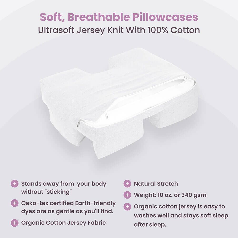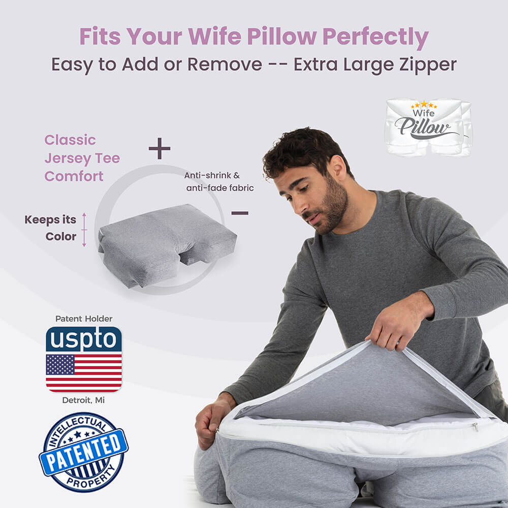 Wife Pillow - Jersey Knit Cover Only, Soft 100% Cotton T-Shirt Feel - Contour Pillowcase Exclusively Our Bed Pillow, Machine Washable & Dryable, White