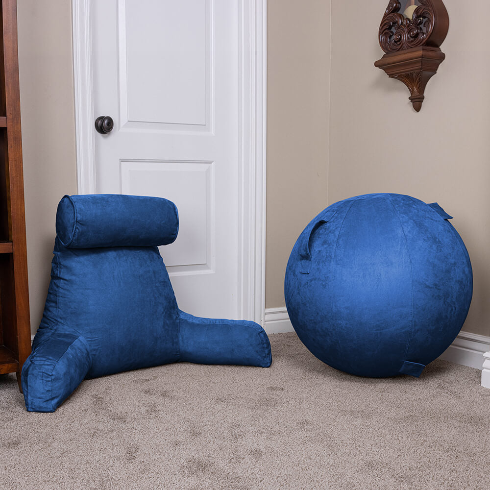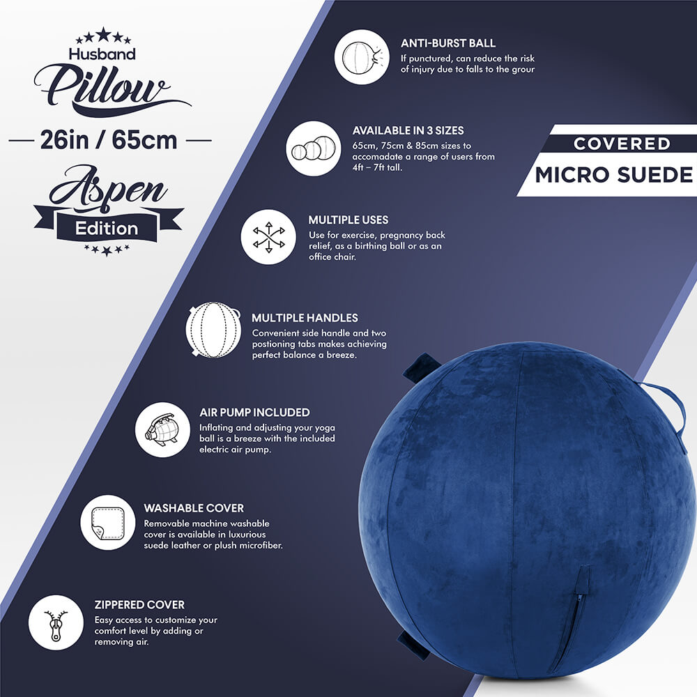 Exercise Ball 65cm/26in, Rodeo Blue Microsuede Leather Cover with Electric Quick Pump For Yoga, Pilates, Fitness, Office Chair Seat. Slip Resistant